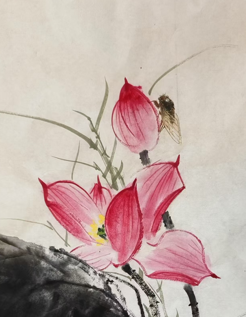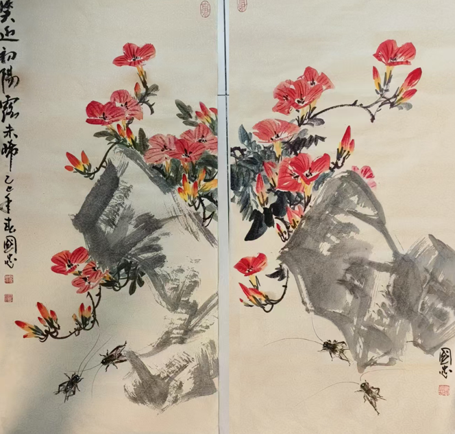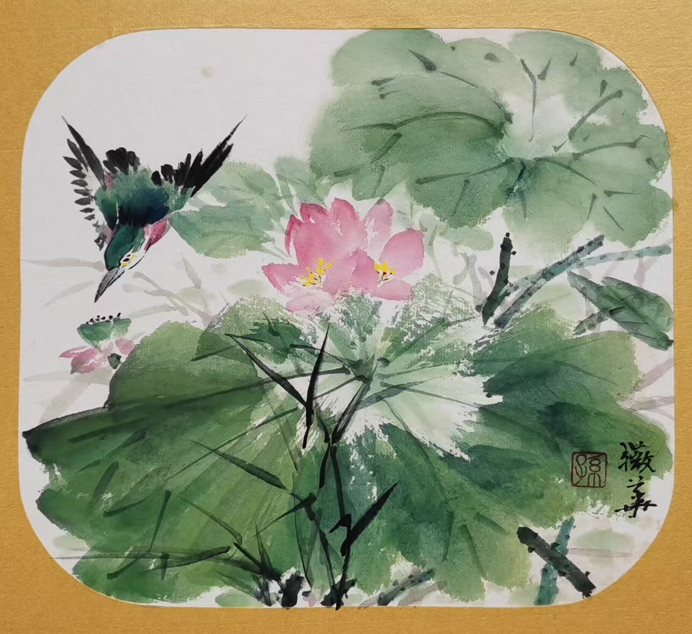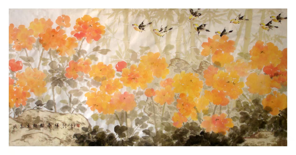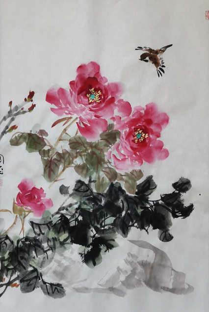 Skilled in painting flowers and birds